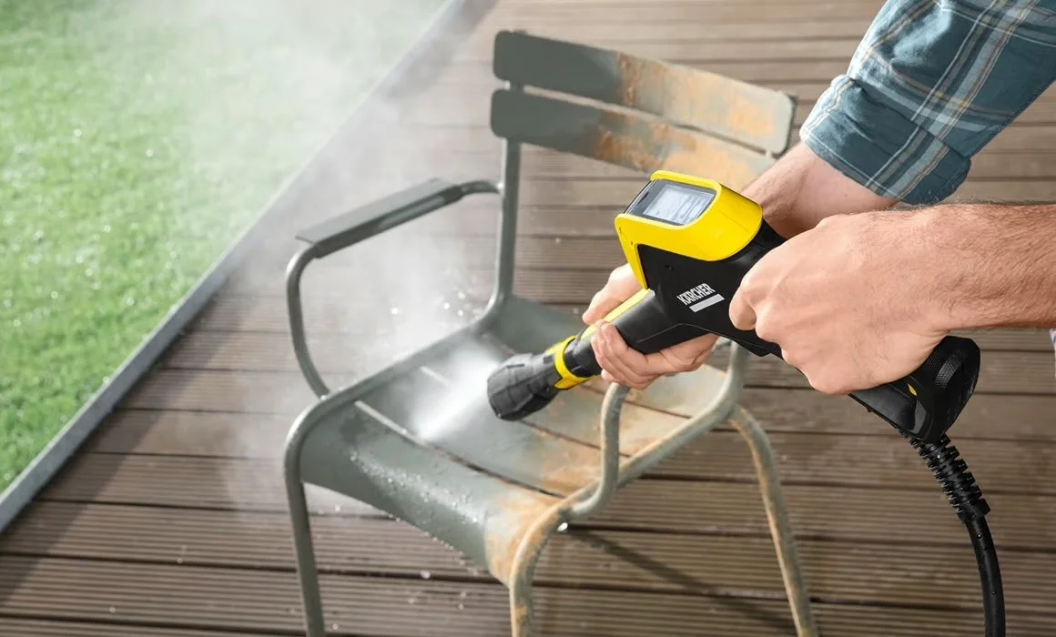– På sensitive overflater, som for eksempel utemøbler av tre, så bør du bruke en vaskebørste. Utemøbler av plast derimot, tåler fint å bli spylt direkte med høytrykkspyler. Kärcher har ulike rengjøringsmidler beregnet på tre, plast og stein, sier Nyhagen, som anbefaler å starte forsiktig.